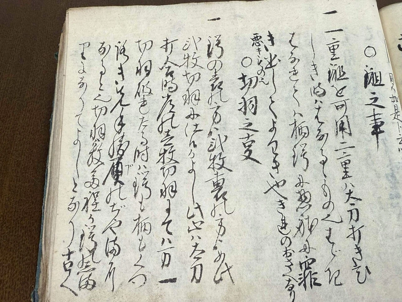 第一に、大小ともに指領(差料)を過度に帯佩してはならない。適度に丈夫な形で鍛え上げられた金味の沸をもつ上作の古身を数度試し、大役物であれば幾通りの代柄・代鞘を拵え、小刀などにも加工すべきである。ともかく、見込みのある大小は離さず持っておくことが肝要である。大小の替えともに三本ほどあれば沢山だろう。