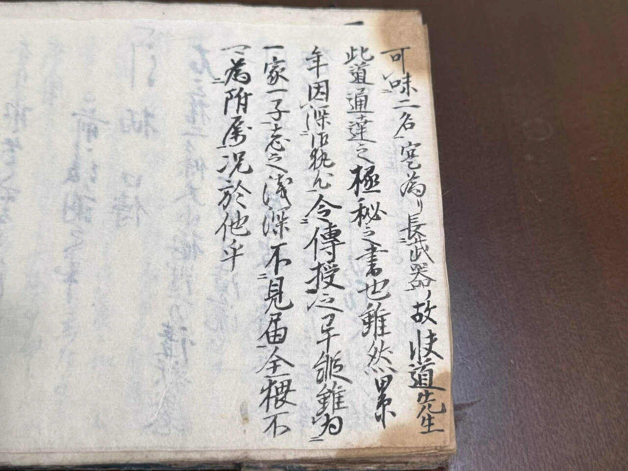 右の三十二ヶ条にわたる「大小拵理方講釈之巻」は、先師・吉田自鏡流の老練なる名匠より、快道潜龍居士に秘かに伝授されたものである。大小二振りの刀を、昼夜を問わず常に帯刀することは、蜂が自らの針を備えて外敵から身を護るように、武人として当然の心得である。刹那たりとも刀を身体から離すべきでないという教えには、活人刀・殺人刀の真味が込められている。快道先生は、武器の扱いに精通されているゆえに、この神秘の道を後進に伝えんと、あえて極秘の書をしたためられた。そして長年にわたる深いご執心の末、ついにその奥義の伝授を許されたのである。ただし、一門の者や実子であっても、その志の深さを慎重に見極めずしては、決して軽々しくこれを伝授してはならない。ましてや、門外の者に伝えるなどは、言語道断の所業である。