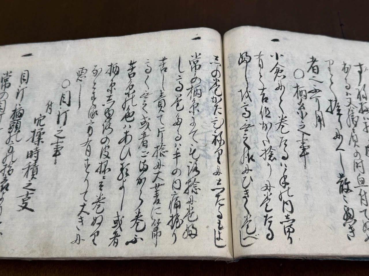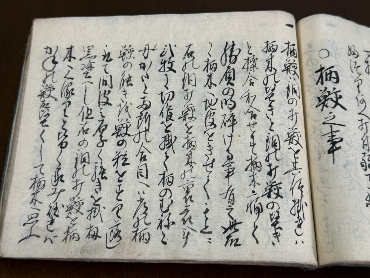 常の樋糸にてもろ捻に巻ふし、高巻たるハ手の内痛握り苦し、責て片捻に大菱に節高く無之、或はごまから巻不苦、糸の色ハあひ類よし、或は柄糸しゆろの皮抔ニて巻ぬりなとする方有、すりて大きに悪し