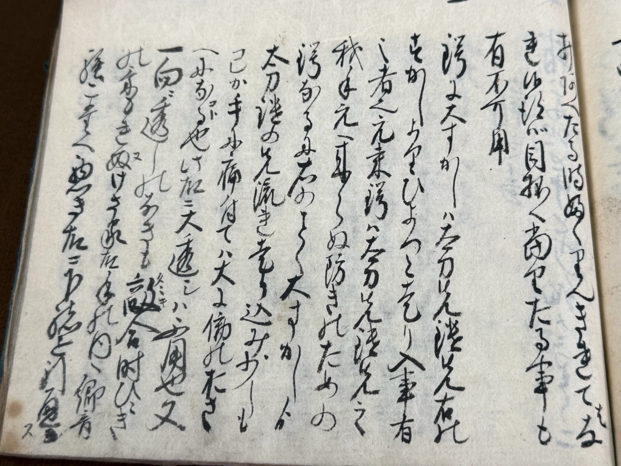 手ぬくひを水ニ而しめし柄へしめりヲ付レハ、手の内しめりて太刀振ぬけさる物なり、水無之所ならハつはきニ而も可用