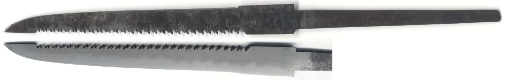 鋸という項目に疑問がございますが、珍しい作りとして小柄の棟に鋸刃を作った物もありますが、これを指しているのか定かではありません。