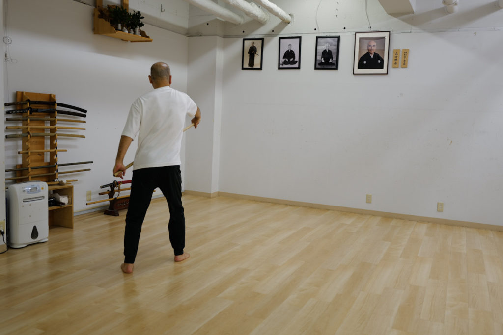 まずは構えと納杖、そして基本の一つを丁寧に稽古。